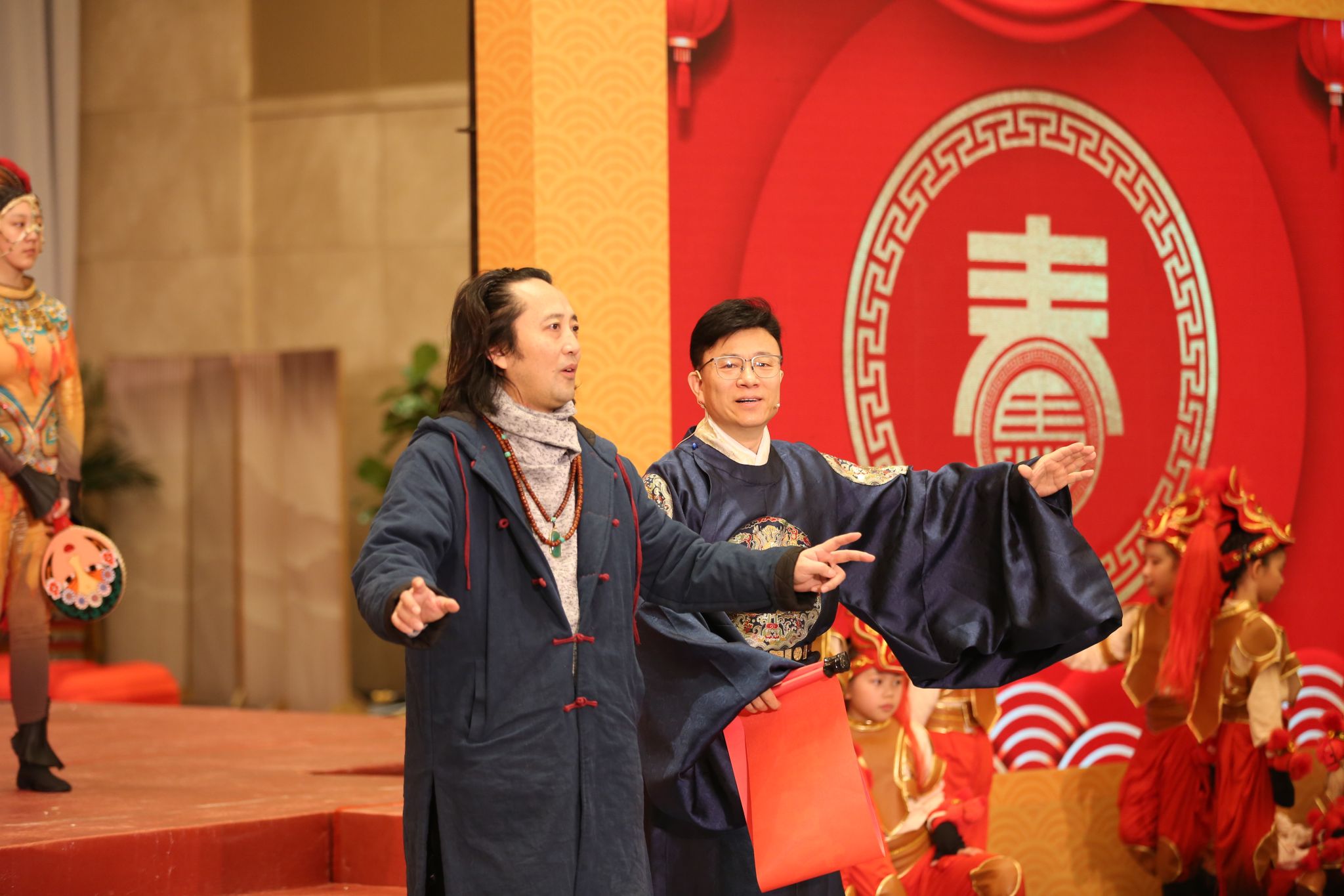 本次文艺演出中,公司副经理韩晓勇教授担任总导演,高雄老师担任执行导演,研究生秦嘉悦、高博雅担任分组导演,组成核心导演团队,全程参与节目策划、编排统筹、舞台呈现与现场执行,保障整台演出主题鲜明、结构流畅、气势恢宏。演出以舞蹈《万马奔腾》开场,串联陕北说书、非遗碗碗腔、民乐演奏、情景歌曲、歌曲联唱等精品节目,回望“十四五”辉煌成就,展望“十五五”奋进新程,充分彰显三秦文化底蕴与新时代陕西昂扬风貌。