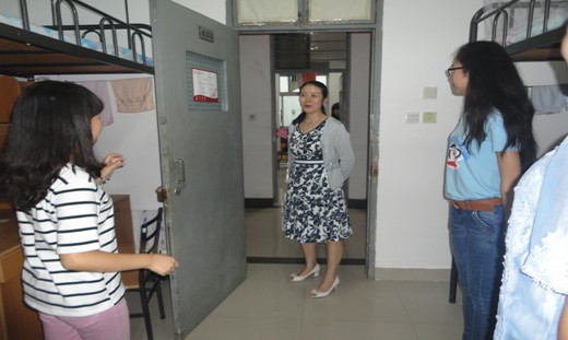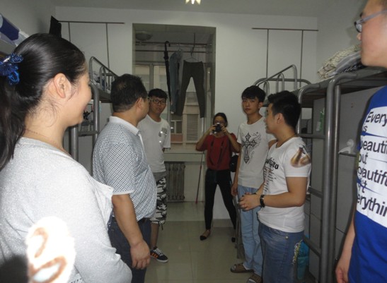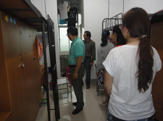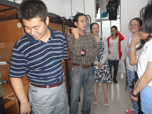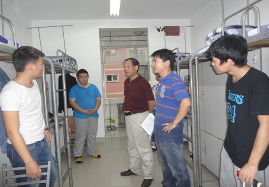 在员工宿舍,各位领导仔细察看了宿舍的环境设施,认真询问了同学们的家庭情况和目前在校的生活情况,并叮嘱新生之间加强交流互相帮助,尽快适应老员工活环境。