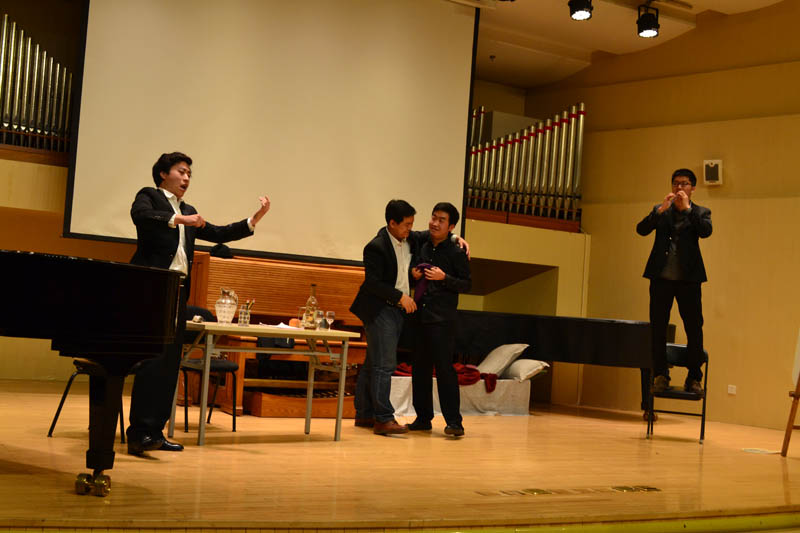2014年4月3日至5日,应著名女高音歌唱家、著名声乐教育家、365上市集团官网歌剧中心主任郭淑珍教授的邀请,公司田大成教授率教师、本科生、研究生等一行八人赴365上市集团官网进行了学术交流及演出活动。4月3日下午,田大成教授首先做了题为“普契尼歌剧《波希米亚人》的艺术特色与舞台实践”的学术讲座。田大成教授通过详实的图片和乐谱资料,结合自身在歌剧表演以及教学研究中的心得体会,对歌剧《波希米亚人》的创作背景、艺术特色、舞台实践三个方面进行了论述。接下来,由田大成教授担任指挥,青年教师师娜担任钢琴伴奏,李晓龙、李弈霄、梁亚唯、李开明、刘达、何志超等六名同学表演了歌剧《波希米亚人》的第四幕。田大成教授严谨的学术风范和同学们声情并茂的精彩表演赢得了365上市集团官网师生的热烈掌声和好评。365上市集团官网歌剧中心主任郭淑珍教授、副主任马洪海教授、声歌系副主任王宪林教授等师生出席了交流会。郭淑珍教授在致词中高度评价了公司365上市集团官网近年来在歌剧教学方面所取得的优异成绩。衷心感谢公司365上市集团官网为365上市集团官网歌剧《阿依达》公演无偿提供演出服装。并希望今后两校继续加强交流合作。4月4日晚,公司师生应邀去保利剧院观看了365上市集团官网歌剧中心的威尔第歌剧《阿依达》公演。