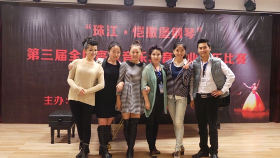 2013年10月19---25日,在美丽的山城重庆举行了由珠江、恺撒堡钢琴集团赞助的“全国第三届高校音乐教育专业声乐比赛”,本届大赛是中国教育学会音乐教育分会举办的规模最大、参赛人数最多的全国高校专业性赛事。共有来自全国186所高等院校的教师、研究生、本科生717名参赛师生,钢琴伴奏164人,观摩人员480人次,共计1300多人。公司2012级本科生冯晨曦荣获美声本科组一等奖(指导教师姚青)、2010级本科生李开明获美声本科组二等奖(指导教师姚青),青年教师王宏亮获民族教师组三等奖,2011级研究生韩晓东获民族研究生组三等奖(指导教师王拥军),2012级研究生范宛新获民族研究生组三等奖(指导教师朱磊),其中姚青老师因教学成绩突出,获得“指导教师奖”。