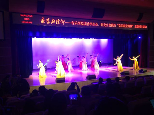 本次活动以演出的形式为大家呈现,节目内容形式多样,丰富多彩。热闹喜庆的开场舞《欢天喜地》营造了欢腾热烈的气氛,让观众们感受到阵阵温暖;诗朗诵《中国梦师大梦我的梦》饱含着师大学子为实现中国梦、师大梦和自己的梦想不懈奋斗的精神;2012级舞蹈2班18位女孩用曼妙的舞姿为带来《颂春》,让大家深深陶醉在改革开放的春天意境之中,流连忘返;歌舞剧《红旗飘扬》将整场晚会推向高潮,中国特色社会主义的伟大旗帜始终在老员工的心中,始终在广阔的大地上高高飘扬;歌伴舞《咱老百姓》两位男同学深情的歌声和舞蹈演员们精彩的伴舞深深表达了同学们对祖国、对党无限的热爱之情。晚会在歌颂中国共产党与人民群众鱼水之情的歌曲《江山》大合唱中圆满落下帷幕。