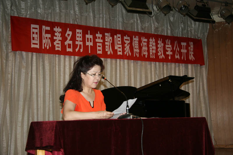 傅海静教授的教学公开课于6月6日在六艺楼报告厅举行,经理田大成教授出席了此次讲座并致欢迎词,田经理在欢迎词中指出,公司在歌剧排演方面取得过一些成就,但公司为进一步加强发展歌剧教育事业,却仍需继续学习,并不断汲取新鲜养分。此次能够邀请到傅海静教授来公司举行教学公开课,是公司师生提升自己综合素质水平的一个良好契机。之后,傅海静教授在雷动的掌声中上台发言,他首先对公司近年来在歌剧教学方面所取得成果表示了肯定以及衷心的祝贺,他表示,在歌剧的教学演唱方面,在我国还有很大的可提升空间,现如今,很多高等院校都在进行歌剧排演,可是能真正做到出色的却并不多,这说明,在这条道路上,我们仍需继续加强。