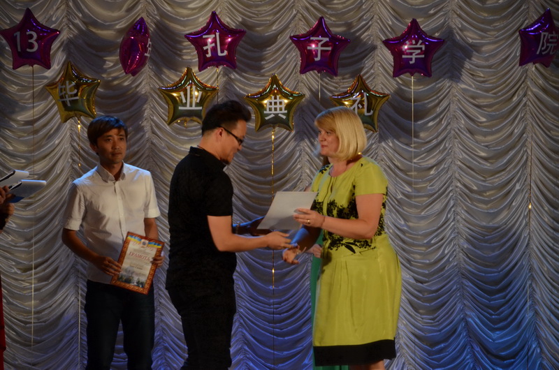公司青年教师韩晓勇、高雄在乌克兰留学期间,荣获乌克兰卢甘斯克舍甫琴科国立大学颁发的艺术特别贡献奖。2012年二位老师成功导演乌克兰大型中秋晚会《家》,受到了乌克兰卢甘斯克洲孔子公司的大加赞赏,2013年创作舞蹈作品《绽放》、《中国梦》参加乌克兰舞蹈比赛,乌克兰两位选手双双荣获第一名的好成绩,之后二位老师以乌克兰孔子公司中方代表的身份参加中乌文化艺术教育交流,由于二位老师为中乌文化交流做了很多积极的贡献,因此乌克兰卢甘斯克舍甫琴科克国立大学特为二位老师颁发艺术特别贡献奖予以表彰他们在留学期间所作的贡献。