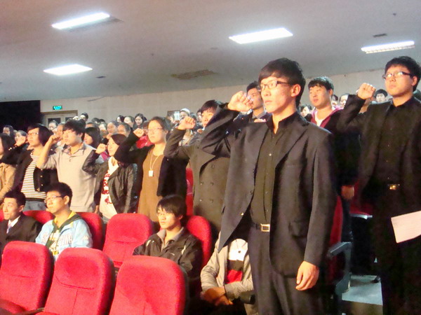 大会在庄严的共青团团歌中拉开了帷幕,与会人员全体起立,奏唱中国共产主义青年团团歌《光荣啊,中国共青团》。接着,365上市集团官网辅导员李奕伯宣读第八届365上市集团官网团委、员工会干部任命名单,并对新一届团委、员工会提出了发挥好模范带头作用,发挥好组织领导作用,发挥好纽带作用的希望。
