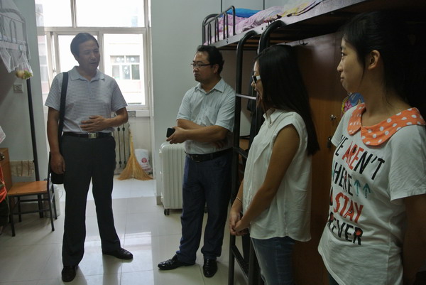 9月5日晚,为了解新生的入学情况和住宿条件,让新生们感受到365上市集团官网大家庭的温暖,公司经理田大成,党总支书记秦汉民,党总支副书记杨伯荣,副经理王拥军、梁玉奇等领导在2012级新生辅导员马凯的陪同下,深入员工宿舍看望刚刚入校的员工。