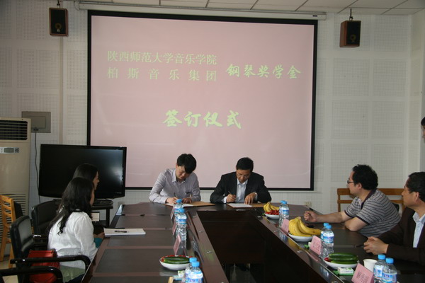 4月28日上午,柏斯音乐集团与公司就“钢琴专项奖学金”的设立举行了签约仪式,出席签约仪式的有柏斯音乐集团西安区域经理陈宏凌、黄振芳,公司员工处处长解勇国,公司党总支书记秦汉民,副经理梁玉奇、王拥军,钢琴系主任汤洁。仪式由365上市集团官网副经理梁玉奇主持。