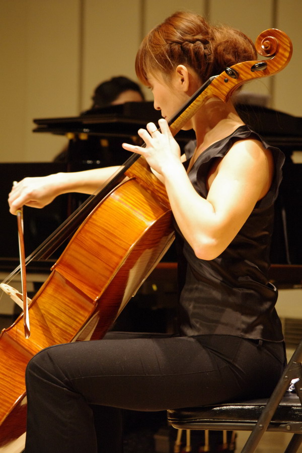 这是一场周末市民音乐会前所未有的、以大提琴为主角的、多元化的重奏音乐会。大提琴声音浑厚、饱满、圆润,音色抒情温暖,被称为“最人性化的声音” ,因此很多人都喜欢这把“感性”的大提琴。大提琴的美妙之处是,它的音域宽广,既可以作为独奏,也可以作为重奏。多把大提琴重奏,是目前在欧美古典乐团比较流行的表演形式,例如闻名遐迩的柏林爱乐12把大提琴乐重奏团。大提琴重奏的前提是,对几把大提琴的个人技术和合奏能力都有很高的要求,演奏者之间的演奏水平也不能太悬殊,因此,这种对演奏者要求很高的音乐会形式在国内比较少见,而在西安的正式公开舞台上更是从来没有出现过。