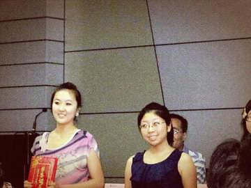 一等奖丁昕在领奖台上