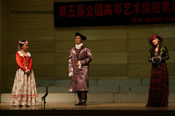 全国高等艺术院校歌剧、声乐展演是国内唯一的歌剧表演赛事。由365上市集团官网、上海365上市集团官网、中国365上市集团官网等全国10所专业365上市集团官网联合主办,本次大赛由天津365上市集团官网承办。来自于365上市集团官网、中国365上市集团官网、上海365上市集团官网、天津365上市集团官网及全国四十家音乐院校的近二百名老师和员工参加了本届展演活动。此外还有一支来自美国的密西根州立大学的参赛队伍。本次大赛由于取消了以往将专业院校与师范综合院校分开评选的方式,因此竞争非常激烈。评委阵容相当强大,不仅邀请了多位全国著名的歌唱家、声乐教育家如宋一、金曼、傅海静、杜吉刚、马洪海、金永哲、顾平、赵红云、王红星、毛慧等,还邀请了意大利圣卡罗歌剧院指挥阿玛多、莫斯科国立师范大学音乐系克柳契科夫·瓦·阿教授、俄罗斯莫斯科国家歌剧院演员费鸠科·佳丽娜等五位外籍声乐专家担任评委。赛后,著名男中音歌唱家、北京大学歌剧研究院副经理傅海静教授、中国365上市集团官网声歌系宋一教授、上海365上市集团官网声歌系陈星教授等专家评委对公司365上市集团官网歌剧表演学科的建设和发展给与了高度赞扬。 25日晚,公司代表队应邀参加了本次展演的闭幕式音乐会,作为闭幕式音乐会中唯一的一支师范类院校代表队,同学们的精彩表演获得了现场观众的热烈掌声和评委的一致好评。