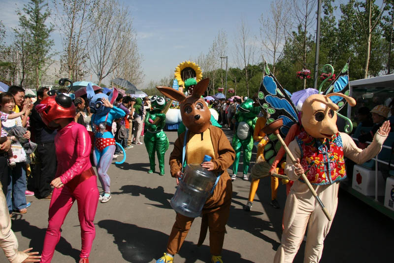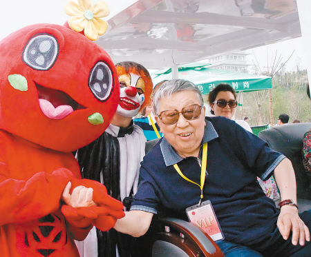 自4月28日世园会开园以来,花车巡游的员工演员们每天都在为游客带来精彩演出,近三个月的辛苦排练终于迎来了世界各地宾朋的“检阅”。每当走进花车巡游活动,都会听见欢快的音乐和观众的笑声。一瓶水、一条毛巾还有一群为梦想而舞蹈的员工将一起度过178天。烈日炎炎,酷暑难耐,但员工演员从没有一人缺席,也没有一人抱怨。要是问去过世园会的游客什么活动最精彩,他们一定会说是每天两次的花车巡游。从风格各异的花车到演员扮演的可爱蔬果、动物角色,都给游人们留下了深刻印象,可爱可敬的员工演员也得到了广大游客的一致赞赏。5月19日,被誉为文艺界“词坛泰斗”、“国宝级艺术家”的空政文工团剧作家、词作家阎肃进入世园会,阎老饶有兴致地观看了花车巡游,节日般的欢快氛围让阎老笑得很开心,不住地说“过瘾”。已81岁高龄的阎肃一时兴起,竟从电瓶车上站了起来,“很好,很有创意,一下子就让人记住了”。老顽童般的阎老还和装扮成长安花的卡通人偶开心合影,并再次赞叹世园会考虑周到,既有东方的意境之美又有西方的形式之妙。