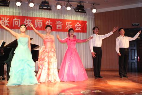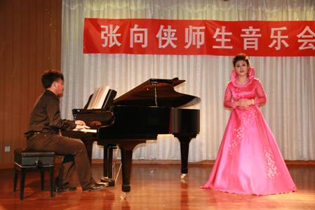 张向侠副教授是公司副经理、硕士研究生导师,中国音乐家协会会员,陕西电视台特邀演员。多年来从事声乐教学研究与舞蹈学科教学论研究,尤其钟爱声乐教学与演唱。此次音乐会张向侠副教授精心准备、历时多月,在整体构思和各个细节方面都力求完美。一个多小时的演出中,张向侠副教授和她的四位研究生共演唱了15首中外声乐作品。音乐会不但在学术上具有代表性,而且在演出的整体舞台效果上也更富欣赏性。