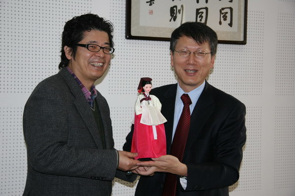 2010年12月10日上午,韩国驻西安总领事馆全泰东总领事携夫人一行访问公司。国际交流与合作处处长张建成、公司经理田大成、副经理程鹏民、副经理梁玉奇、音乐文化学系主任王卫东等在公司会议室与来访客人进行了亲切会谈。