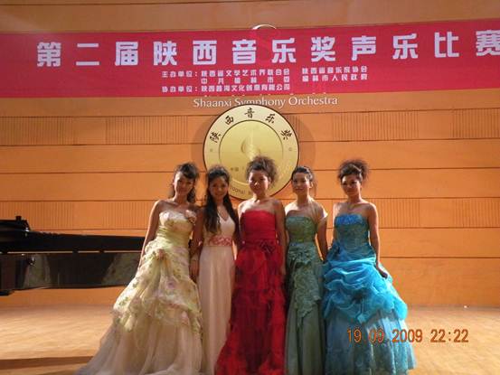 在举国同庆祖国六十华诞之际,由陕西省文联、陕西省音乐家协会、中共榆林市委、榆林市人民政府共同举办的“第二届陕西音乐奖”声乐比赛中。经过初赛、复赛、决赛三个环节,在近300名选手中,公司声乐系青年教师雷倩、李亚云分获民族专业组二等奖,本科生鱼党军获优秀奖,09级研究生徐敏、路颖分获美声专业组二、三等奖,本科生周婷婷、王丹艺、07级研究生杨颖分获优秀奖,07级研究生陈瑶获通俗组优秀奖。