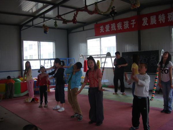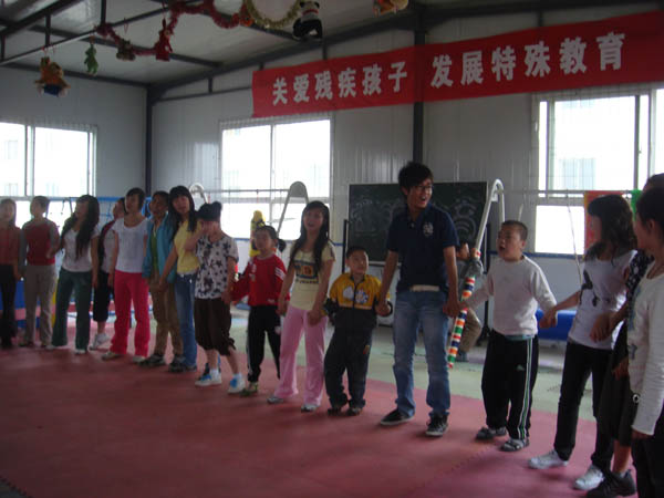 自费创办这所幼儿园的张老师告诉我们,虽然她已经为这所幼儿园倾其所有,但她感到非常快乐而且会一直把它办下去,来帮助那些需要帮助的孩子。在心心幼儿园的所见所闻让在场的每一个队员都深深体会到了老师们的艰辛和博爱,并被他们那种无私奉献的精神所感动着。通过询问,我们还了解到这些孩子不仅仅是心理残疾,而且多数家庭都很贫困,但再贫困也挡不住父母爱孩子的心。有一年中秋前,一个孩子的父亲骑着自行车将近二十里路就为给孩子送一块月饼,这唯一的舍不得吃的一块月饼凝结着不知多少父爱,人说父爱如山,此时就是最好的见证!