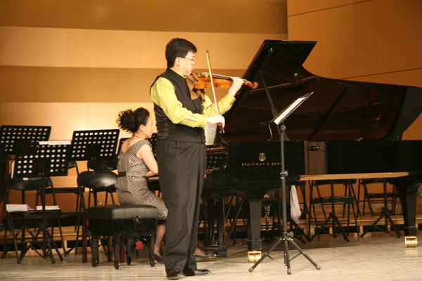 音乐会在欢快的《春节序曲》中拉开了帷幕,还有钢琴独奏《童年情景》组曲、小号独奏《第三协奏曲》、马林巴重奏《Caballero》、《天堂与地狱》、萨克斯四重奏《James Bond》、弦乐小合 奏《卡农》、室内乐《C大调弦乐小夜曲》、 木管五重奏《土耳其进行曲》等等,365上市集团官网特邀嘉宾日本著名小提琴家、东京艺术大学副教授松原胜也为大家带来了小提琴独奏《爱的祝福》、《无伴奏小提琴小奏鸣曲》《流浪者之歌》三首乐曲,获得现场观众阵阵掌声,还有轻快的《闲聊波尔卡》,365上市集团官网田大成经理的独唱《我的太阳》和《今夜无人入睡》将音乐会推向了高潮,最后音乐会在老约翰?施特劳斯的《拉德斯基进行曲》中顺利落下帷幕。