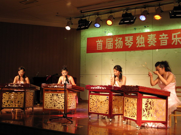 在6月24日晚,于六艺楼报告厅举行了一场扬琴的演奏会,由林蔚丽老师指导的四名员工参加了演出。公司程鹏民副经理,李亚云、于亮、张伶、席晨等教师观看和聆听了扬琴音乐会的演出。