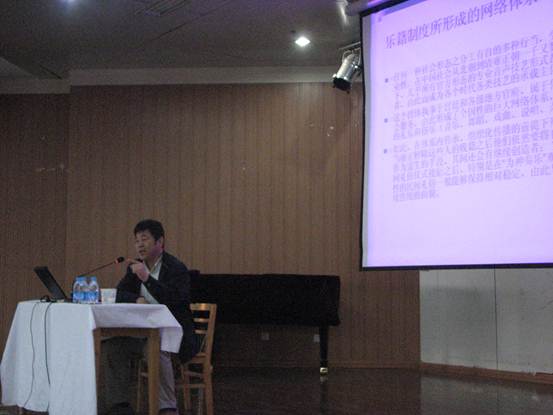 本次讲座题目是《民间礼俗—传统音声技艺形式的文化生存空间》。项阳先生从非物质文化遗产中与音乐相关的五大类(民间音乐、民间舞蹈、民间戏剧、民间曲艺、民俗)入手,侧重阐述了传统音声技艺形式的文化生存空间——民间礼俗(民俗)的历史渊源及其重要性,并联系当今社会现实,以田野调查为依据,深入浅出、层层分析了目前“传统音声技艺主体”与其“文化生存空间整体”改变的现状,然后结合非物质文化遗产保护提出了很多值得我们深思的问题。项阳先生渊博的知识、独到的见解、诙谐的语言,博得师生阵阵热烈的掌声。