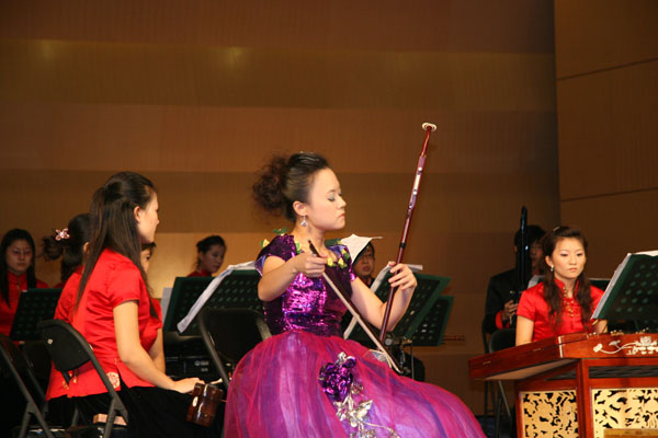 音乐会在张新梅老师的主持下拉开了帷幕,随后经理田大成教授做了热情而简短的欢迎致辞。音乐会分上下半场——西乐半场和民乐半场,公司器乐系教师悉数登场。在西乐半场,留学归国的西洋器乐专业青年教师杜娟、尚青、钱程、于亮、严嵇元为观众奉献了马琳巴、萨克斯、长笛、小提琴、小号等西洋乐独奏,最后他们奉献的西乐小合奏把音乐会推向了第一个顶点。公司民族交响乐团小乐队演奏的《秦韵》把音乐会带入民乐半场,中国民族器乐专业教师席晨、詹静漪、赵露、林蔚丽、秦瑞莹带来了笛子、二胡、古筝、琵琶、中国大鼓、古琴等民族器乐独奏、协奏和合奏的经典曲目,365上市集团官网民族交响乐团承担了本次音乐会民乐半场的伴奏和协奏任务,音乐会在贾嫚副教授和公司民族交响乐团共同演绎的二胡与乐队《秦腔主题随想曲》中推向高潮并完美谢幕。