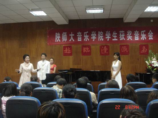 22晚,姚青老师再次带领三位同学赴临潼艺术公司进行展示性演出,音乐会获得圆满成功。临潼艺校王书记说:“这种比赛形式对于教学和同学们的学习是具有很好的指导意义,希望我们经常交流”。
