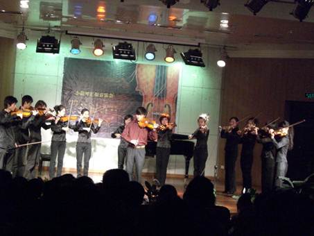 2008年6月13日19:30分,在六艺楼报告厅举行了公司首届小提琴音乐会。这是自于亮老师担任公司小提琴专业教师以来的第一场员工汇报音乐会,也是公司第一次小提琴专业员工汇报音乐会。公司经理田大成、副经理程鹏民以及韩晓勇老师等到场观看了音乐会,此次音乐会也得到了本校其他院系老师的支持,文公司的杨宏科教授、计科院的雒朝梁副书记以及体院的老师们也到场观看了此次音乐会。