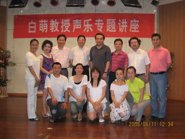 讲座主要是以示范课的形式进行,先后有陈丹、陈旭等6位同学得到白萌教授的指导,白萌教授用简单通俗、幽默风趣的语言讲解示范,不时得到现场阵阵掌声和欢笑声,无论是外国咏叹调、还是中国名歌白萌教授都能够深入浅出示范讲解。现场师生对白萌教授的讲座都认为很受启发,更是一次很好的交流和相互学习的机会,对公司声乐教学起到了很好的促进作用 。