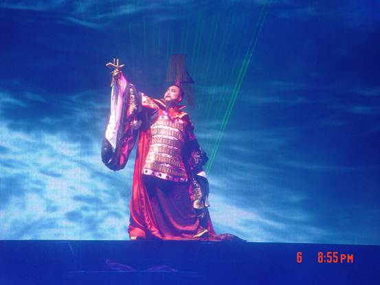 7月18日晚大型史诗歌舞剧《蓬莱仙境》在山东省蓬莱三仙山大剧院首演,这是山东省委宣传部开发山东蓬莱旅游资源而精心创作的一部大型歌舞剧,特邀公司副经理程鹏民教授在剧中担任主角扮演秦始皇,首场演出获得圆满成功,程鹏民教授的精彩表演受到山东省各级领导和海内外观众的赞赏和好评。