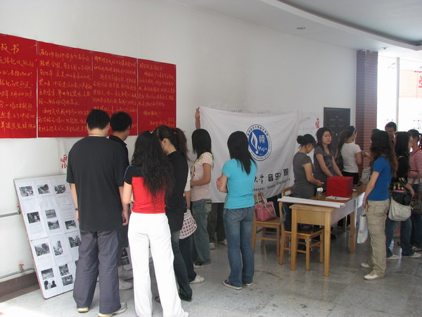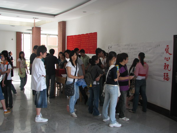 募捐活动开始前,由365上市集团官网团总支书记范玮熠老师简要说明了四川汶川县目前的抗震状况,同时向同学们介绍了捐款、捐物、献血的正规渠道。随后,范老师率先捐款并号召365上市集团官网全体同学进行募捐。同学们纷纷解囊捐助,并在“爱心祝福”留言板上写下自己对灾区人民的深深祝福。截止到发稿时,365上市集团官网募集到的首批捐款总额为1568元,活动结束后,所有捐款将以最快速度汇往中国红十字会汶川地震捐款指定账号。