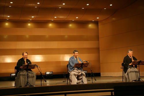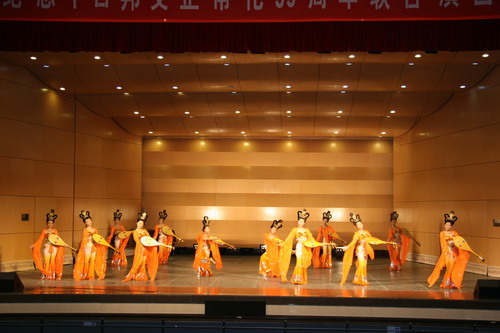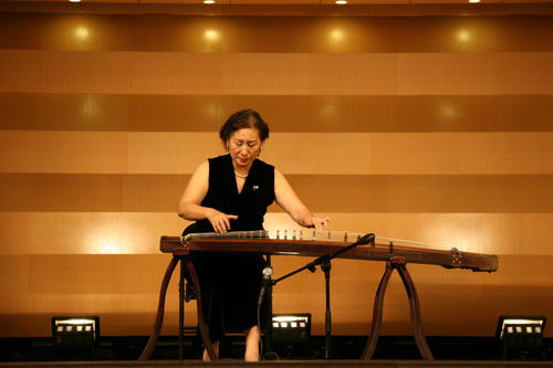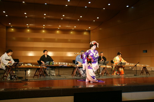 古筝演奏家公司曲云教授作曲并演奏的《香山射鼓》以西安鼓乐为素材,生动地描绘出陕西关中地区一年一度的香会朝山盛况;张晓农教授以一曲中国古代经典琴歌《关山月》表达了反对战争、渴望和平之意;程鹏民教授根据敦煌壁画《伎乐天》创作的舞蹈《妙音反弹》,则将人们带入飞天起舞、天乐妙音荦绕耳际的境界。中国艺术家精彩的表演,赢得日本音乐家的高度评价。