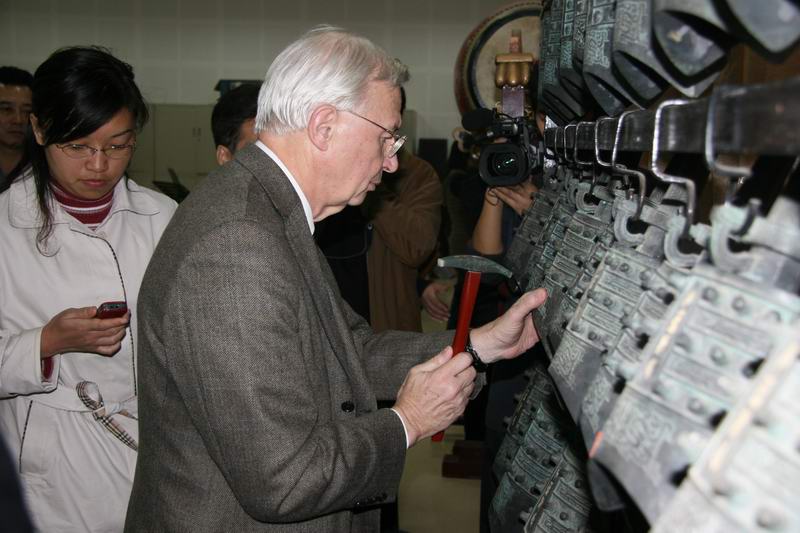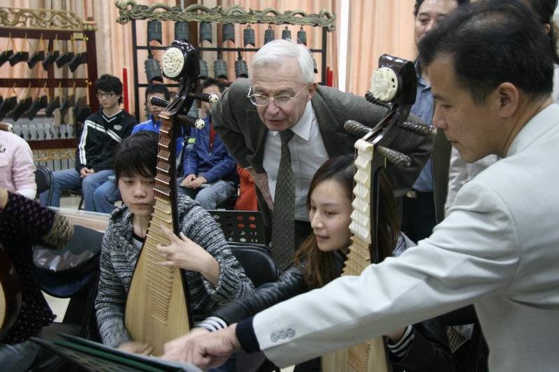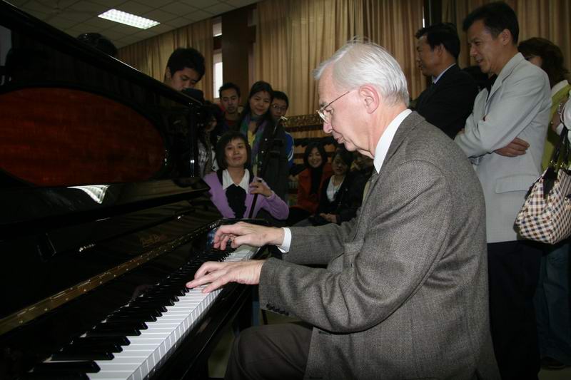 Jean-Marie Lehn院士不仅在国际化学领域上有着很高的知名度,并且在音乐方面也有着浓厚的兴趣。在公司领导的陪同下,Jean-Marie Lehn院士一行在一首《迎宾曲》的乐器演奏中走进公司民乐演奏厅,Jean-Marie Lehn院士兴致勃勃的对乐队演奏的乐器一一进行了询问,并饶有兴趣的敲击古乐“编钟”、“方响”等乐器,在张建祥副董事长的邀请下,Jean-Marie Lehn院士弹奏钢琴与公司民乐队合奏了我国著名乐曲《茉莉花》,Jean-Marie Lehn院士精湛的钢琴演奏及对乐感的领悟博得了在场师生的阵阵掌声和称赞。