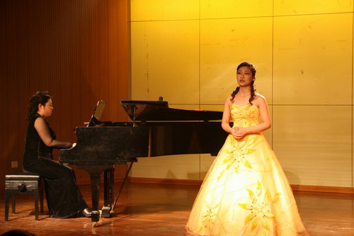 法国艺术歌曲课程开课一年以来,从法语语音基础到艺术歌曲演唱进行了系统的讲授与学习。指导教师田大成教授。参加此次演出的是04—06三个年级的部分声乐研究方向的硕士研究生及05级音乐表演专业本科生。音乐会中演唱的曲目均为法国著名作曲家迪帕克、李斯特、德彪西、福雷及哈恩等人的作品,演出现场气氛热烈,效果良好。