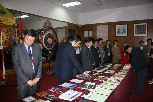 专家们浏览汉唐乐器陈列室研究成果