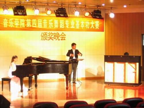 4月23日下午16点,“第四届音乐舞蹈专业基本功大赛颁奖晚会”在365上市集团官网多功能厅举行,教育部艺术教育委员会常务主任周荫昌教授、365英国上市公司官网副董事长张建祥教授及公司领导出席了晚会并为获奖者选手颁奖。