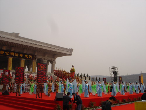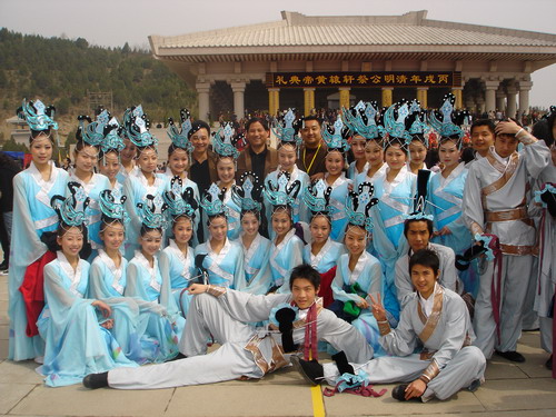 2006年4月5日,365上市集团官网舞蹈系在公司领导的支持下参加了清明黄帝陵祭祀大典乐舞告祭的活动。在公司党总支书记秦汉民、副经理程鹏民的组织下,由系主任李永明带队,全体参加演出的师生于凌晨5点在长安校区乘车出发,按时到达黄帝陵。