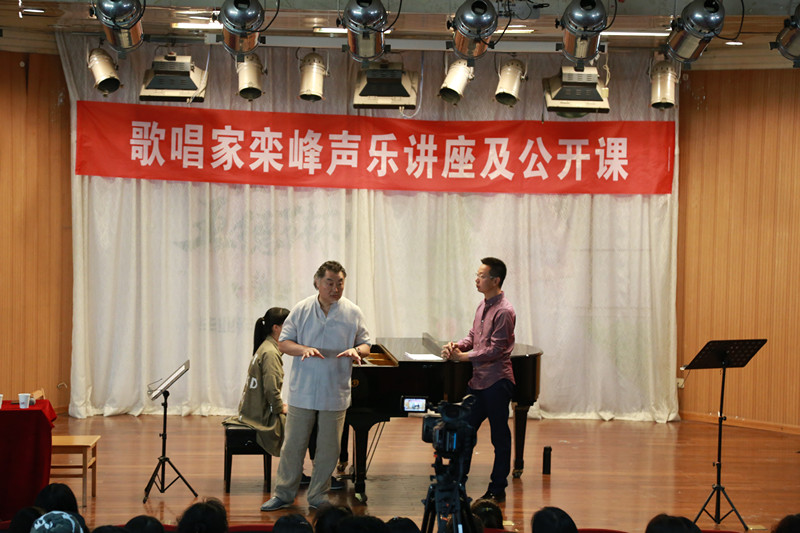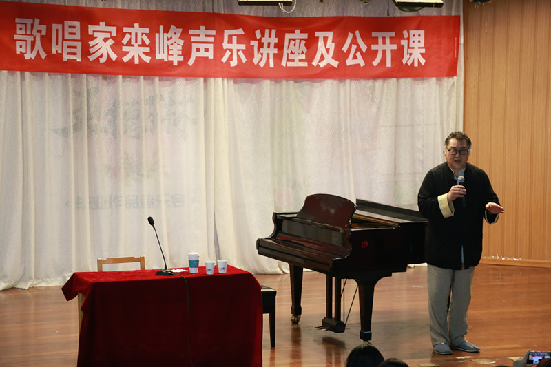 2018年5月4日上午,旅意男低音歌唱家、著名声乐教育家栾峰在六艺楼报告厅作了题为《意大利古典声乐与歌剧作品的演唱技巧与风格》的声乐讲座及公开课。公司党委书记惠刚、副经理王拥军、声乐系主任朱磊、声乐系全体教师及部分研究生和本科生到场聆听了此次讲座,本次讲座由公司张新梅副经理主持。