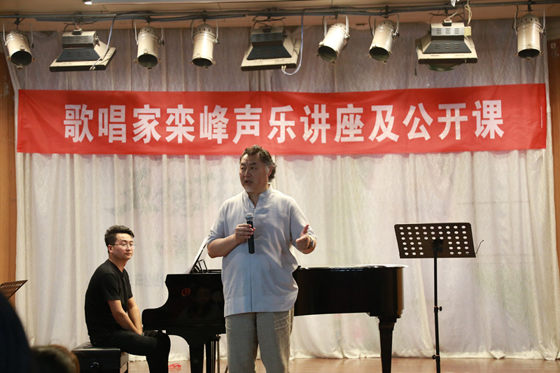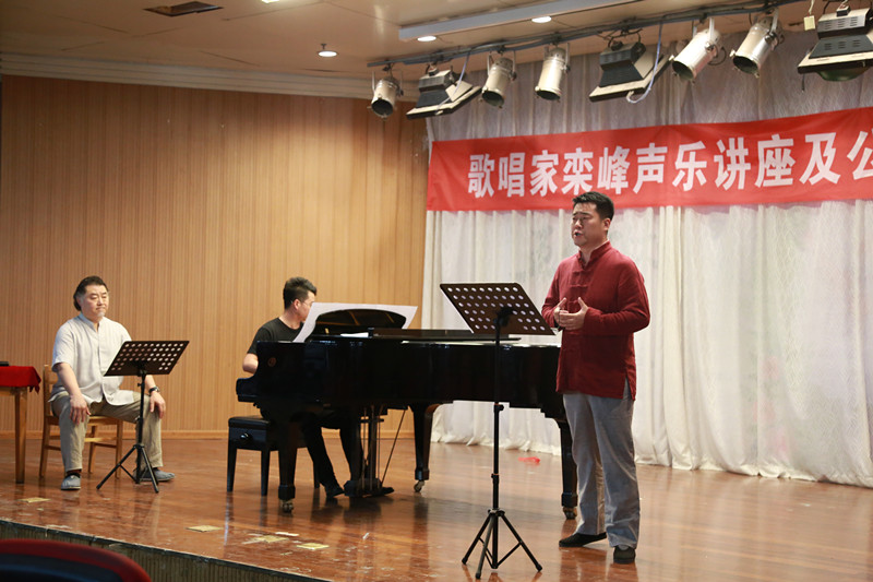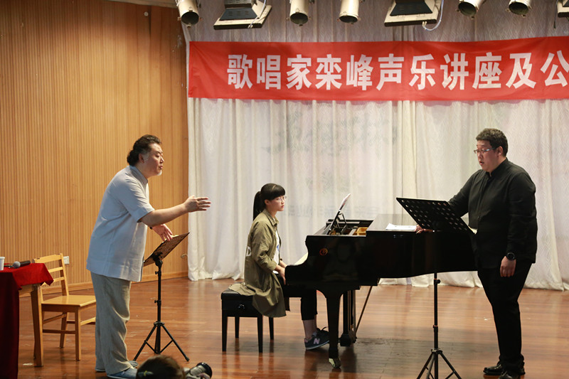 栾峰先生对公司声乐系青年教师马俊、任红星、李晓峰、李亚云分别进行公开课教学。栾峰先生根据意大利语的发音规律提出了咬字习惯的重要性与咬字的常见误区,提出声音为音乐服务,声音训练的目的是为了更好的表达作品的内涵;他通过对声乐作品的示范,更直观的展示了歌唱位置与发音对于作品演绎的重要性;最后他强调我们要回归本土,通过学习借鉴意大利美声的发声方法,更好地对中国声乐作品进行演绎。