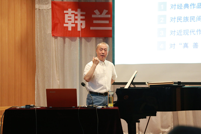 此次讲座由张新梅副经理主持,张新梅首先向在场师生对韩教授简介,结合自己学习经历讲述了韩教授作品影响之深远。随后,韩教授上台为大家作详细报告。他首先强调西北历史文化对于自身创作影响很深,从音乐文化学、音乐地理学角度来说,西安都具备广阔的研究与参考空间。接着,韩教授分享了自己的创作观念,总结出“作曲四大件”,即对经典作品的分析能力、对民族民间音乐的占有量、对近现代作曲技法与化解能力、对真善美的崇尚,并强调“创作不能轻易丢弃自己的风格”这一重要理念。最后,根据理论讲授,韩教授结合实际为大家介绍了自创的四部作品:西洋交响乐《丝路断想》、民族管弦乐《月牙泉的故事》、童声合唱《朱鹮你好》及声乐独唱《送你一个长安》,他以钢琴演奏及音视频播放的形式,结合每一部作品进行作曲技法及创作思路解读,为大家深入了解作品提供了直观感受。