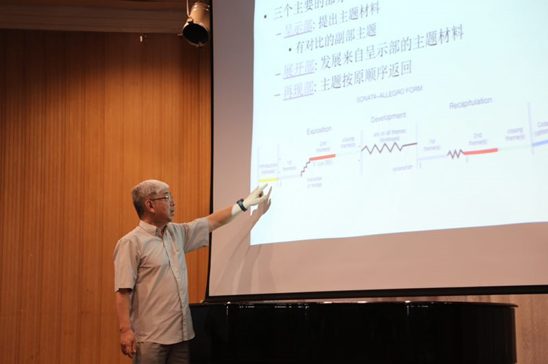 讲座围绕着古典主义时期(1750-1820年)四种最重要的曲式:三部曲式、奏鸣曲式、变奏曲式和回旋曲式展开,并通过对古典主义音乐大师海顿和莫扎特作品的讲解,使得同学们准确、深刻地把握这一时期的音乐作品及其曲式构造。