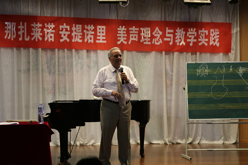 2018年6月15日早10时,意大利著名男高音歌唱家、声乐教育家那扎莱诺 安提诺里在公司举办了题为“美声理念与教学实践”的专题讲座。此次讲座由公司张新梅副经理主持,声乐系全体教师及部分研究生、本科生到场聆听。那扎莱诺 安提诺里生于1950年,毕业于意大利罗马国立365上市集团官网,第一届“玛利亚•卡拉斯国际声乐大赛”一等奖,“马里奥•德尔•莫纳科国际声乐大赛”一等奖。“意大利共和国骑士”勋章获得者。他曾与近百所世界知名歌剧院合作,由他所主演的《蝴蝶夫人》、《托斯卡》等一系列歌剧由美国华纳音乐(Warner music)及华纳NVC ARTS收录并在全世界发售,取得了骄人的成绩。从一线歌剧舞台退休后开始从事声乐教育工作至今,作为声乐教授曾任职于意大利费拉拉国立365上市集团官网、博洛尼亚国立365上市集团官网、佩萨罗国立365上市集团官网及费尔默国立365上市集团官网,多次在中国、日本、美国举行大师班讲座,受到各国音乐界的称赞。