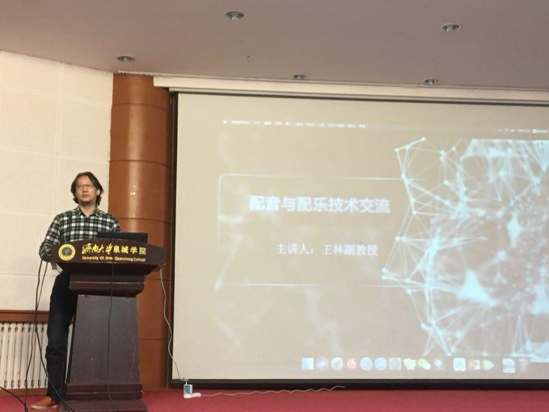 2018年12月21日,公司王林副教授受邀赴济南大学泉城公司举行了配音与配乐技术相关讲座。出席本次讲座有济南大学泉城公司曲洪启经理、郭敏霞副经理、音乐教研室相关教师及员工700余人,讲座由郭经理主持。