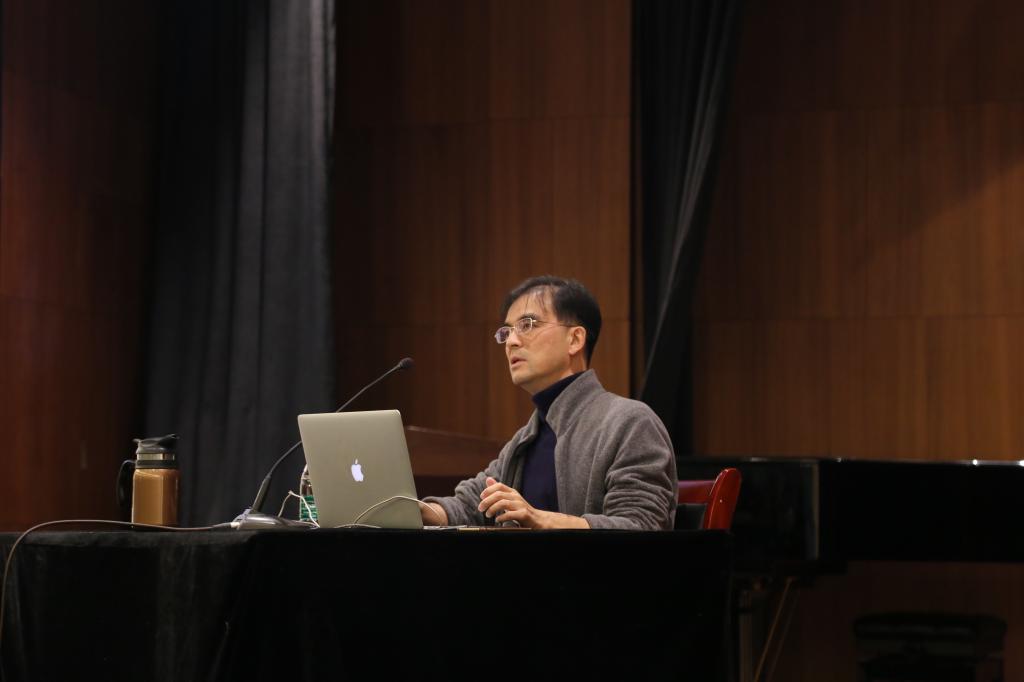 讲座的第一部分,高平教授首先结合自身的求学经历谈及“要学会在更开放更辽阔的世界探寻美”。然后通过对东西音乐特点的对比介绍了创作民族器乐作品和西洋乐器作品的异同点。他发现中国民族器乐的韵味同现代音乐对音响的探索“同途与殊归”。