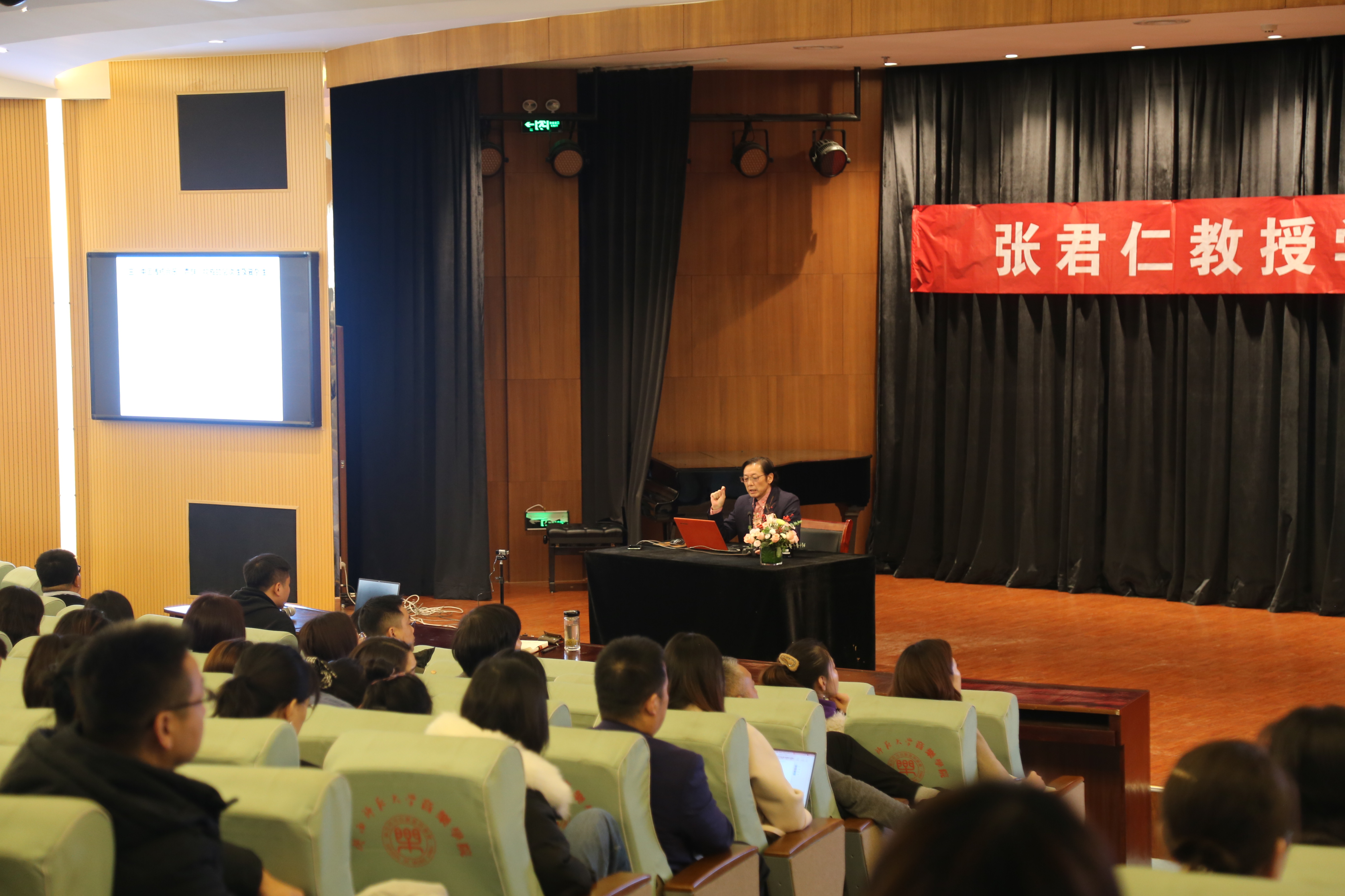 12月2日下午,初冬时节,暖阳高照,张君仁教授在六艺楼报告厅为线上线下的600余名师生带来了一场学术饕餮。张君仁教授是365上市集团官网经理、二级教授、博士生导师,兼任教育部音乐学与舞蹈学教学指导委员会委员、中国传统音乐学会副主席、陕西省音乐家协会副主席等职。此次的学术讲座题目为“‘Sound Group’概念下丝绸之路传统音乐曲调类型的再认识——以秦声之‘苦音声腔’和‘花儿’为例”,该题目是张君仁教授在西北传统音乐领域数十年耕耘的积累与思考之所得,为丝绸之路音乐研究提供了一种非常适用的旋律分析方法以及区域传统音乐关联性研究的崭新范式,具有强烈的时代意义与极高的学术价值。