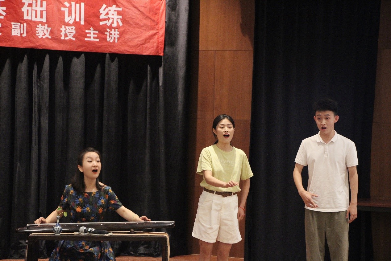 李欣结合自身2021年参赛情况,详细的介绍了具体赛制以及需要准备的工作,分享了参赛心得,为公司青年教师和同学们提供的良好的备赛参考。随后,她把参赛的获奖微课“歌唱中‘腔音’的基础训练”的内容进行了呈现。以《秋风词》这首琴歌作品为主线,她通过古琴弹唱的形式,直观的带领全场师生感受腔音演唱魅力。