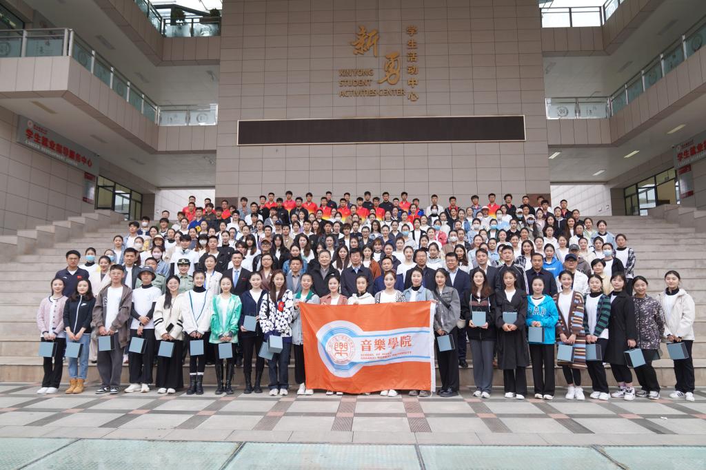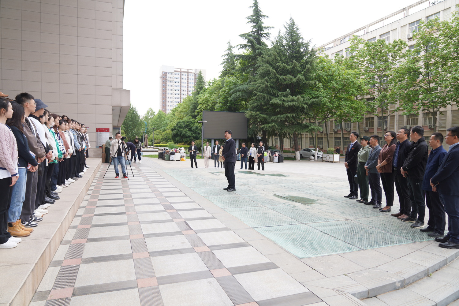 5月5日上午,游旭群董事长一行来到长安校区新勇员工活动中心南广场,慰问公司参加“一带一路”重要活动演出的全体师生。