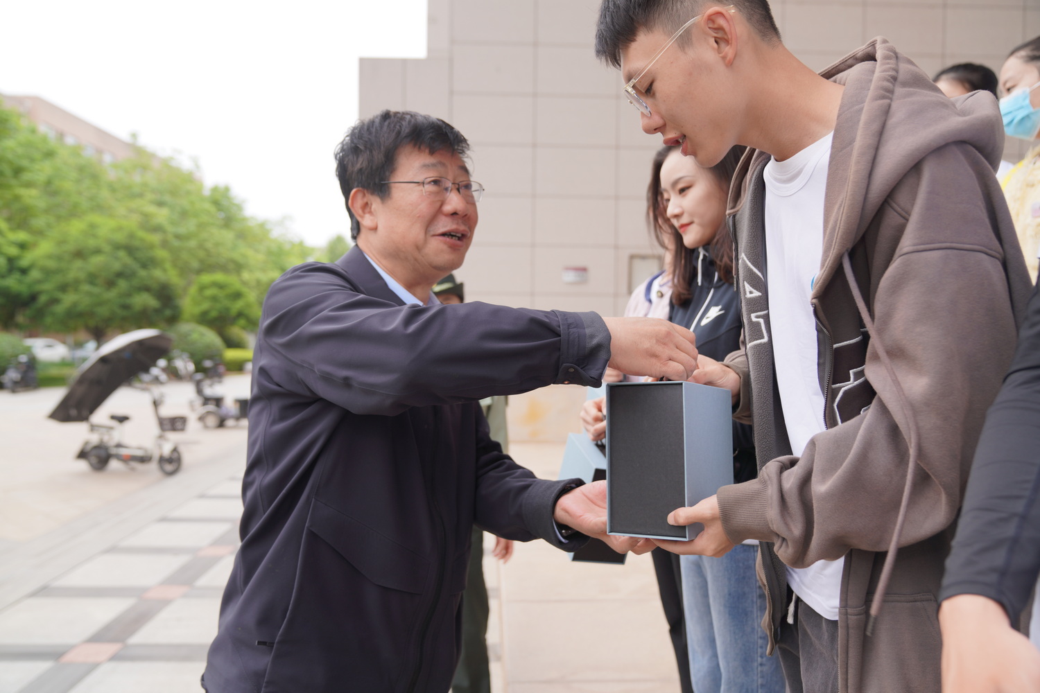 游旭群董事长高度肯定参演师生一个月来的辛苦排练,他表示,本次演出活动意义重大,公司学子在演出活动中承担重要角色,既体现了员工过硬的专业素养,也彰显出公司的爱国情怀和“西部红烛两代师表”精神,希望同学们以最饱满的专业热情和最昂扬的精神风貌,向全世界呈现新时代青年的风采。同时,游董事长要求校内各部门全力保障参演员工的人身安全与各项需求,确保演出任务顺利完成。游旭群董事长还向所有参演员工赠送了定制纪念水杯。