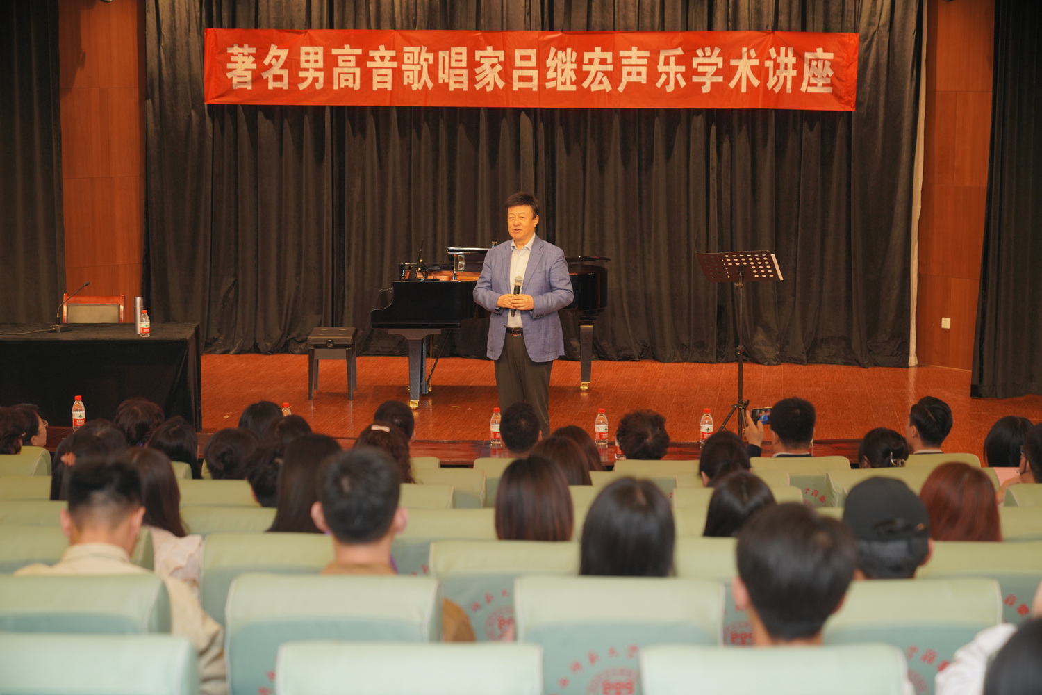 学术讲座在六艺楼报告厅举行,校内外400余名师生参加讲座。吕继宏从文学、美学、哲学等层面对声乐学习作出独到讲解,谈到学习声乐要解决“文学”问题,即朗读歌词;解决“美学”问题,即表现画面;解决“哲学”问题,即寻找个人发声方法,与自我深刻对话。在演唱分析环节,吕继宏对上台演唱的师生进行一对一指导。他指出,声乐是一种艺术性的表现,歌唱技术和情感缺一不可,要关注气息支点、发声方式、歌词咬字等要点,真正意义上做到“用歌唱打动人心”。