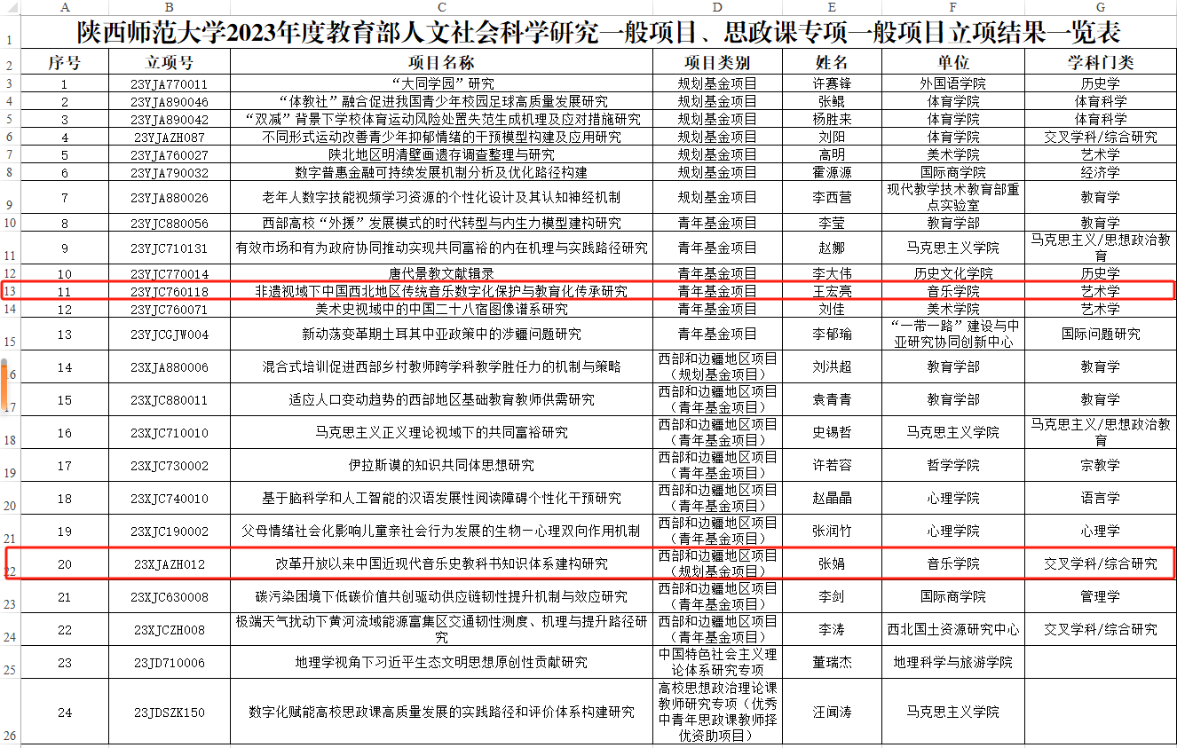 公司教师张娟的《改革开放以来中国近现代音乐史教科书知识体系建构研究》获批西部和边疆地区项目(规划基金项目)、王宏亮的《非遗视域下中国西北地区传统音乐数字化保护与教育化传承研究》获批青年基金项目。