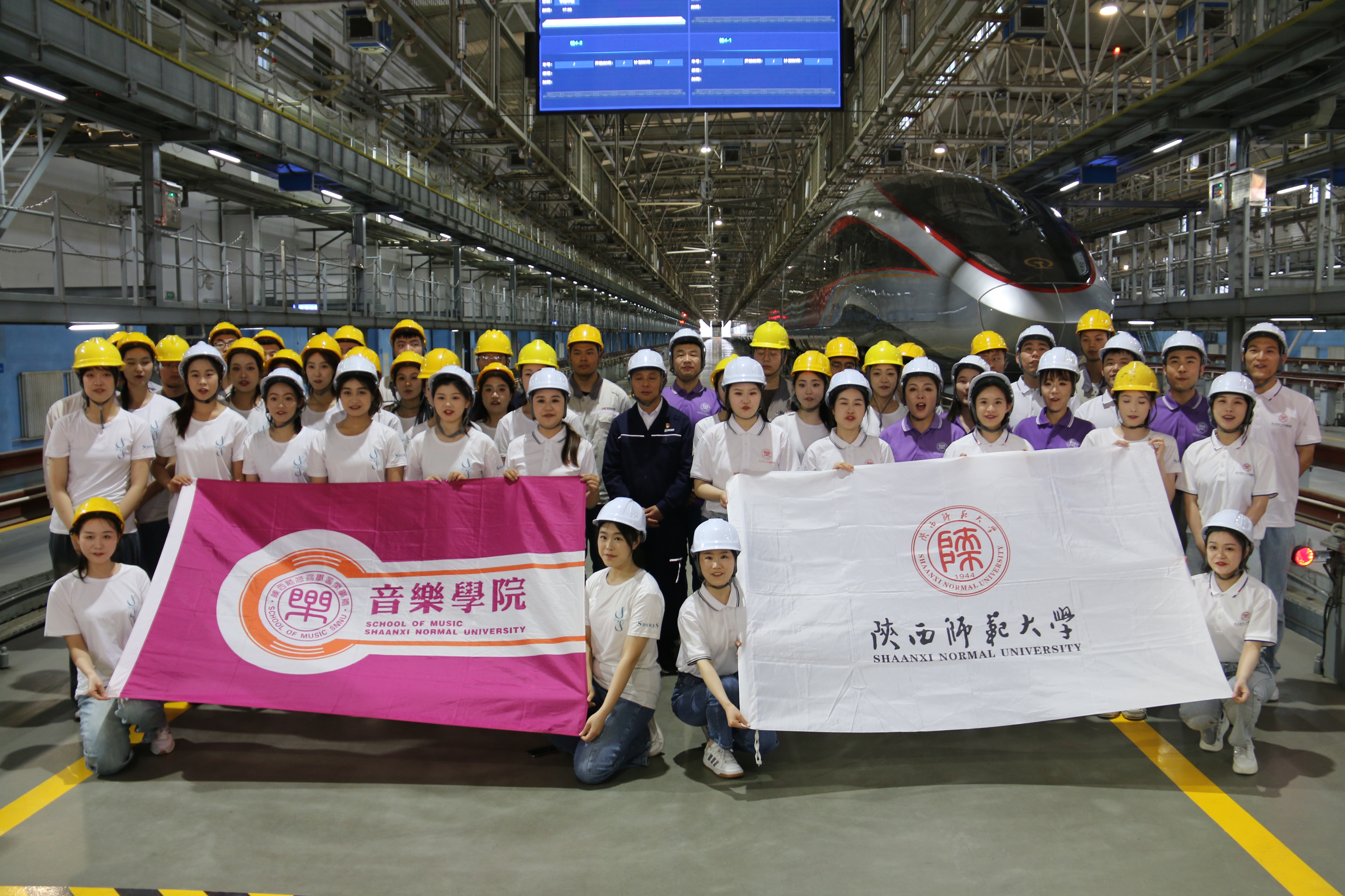 首先来到西安东站施工建设现场,工作人员向师生介绍工程所需材料,并进行了灭火、急救等现场实训。随后来到北客站高铁入库检修站,公司师生用专业与热情,为工人师傅们带来一场歌舞盛宴。青年教师郝亮亮演唱《师傅》,表达公司师生对铁路人的敬佩、感激之情。雷倩老师一曲《天路》,抒发一代又一代劳动者对未来的美好期盼,将现场气氛推向高潮。