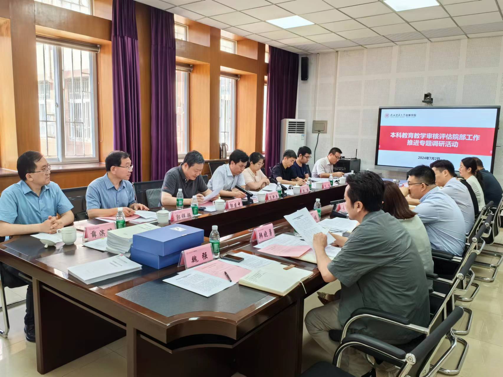 黄键经理汇报了公司本科公司产品审核评估工作推进情况。教务处郭建中处长从公司本科人才培养理念和目标、育人文化和质量保障体系、本科人才培养模式改革等三个方面宣讲了公司本科公司产品有关情况。调研小组围绕公司自评报告、支撑材料、特色材料、典型案例等方面与公司党政班子进行了交流。