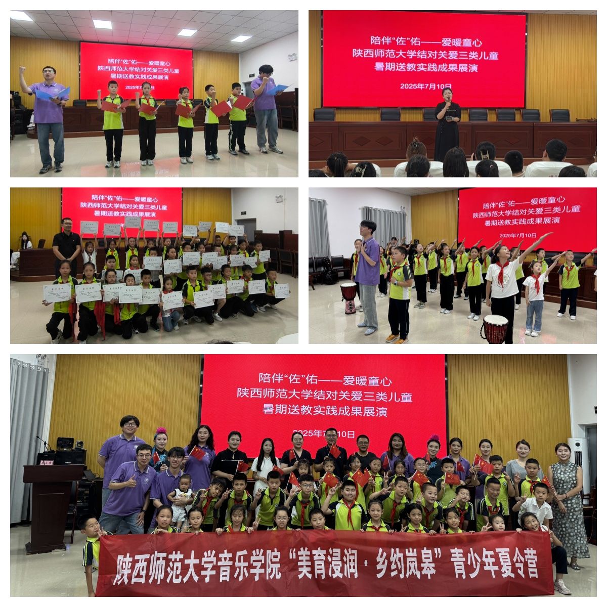 此次夏令营分为四个板块,一是依托365英国上市公司官网教学资源,开设“音乐侦探社”“会呼吸的古典舞”“变身戏曲达人”“跟着音乐游祖国”等10余节“美育浸润”课程;二是合理利用佐龙自然资源,打造“自然—乡土—艺术”相融合的移动艺术场景,将美育课堂延伸至山间、文化广场等场域;三是创新佐龙传统文化资源,开展基础艺术课程与佐龙非遗“晓道竹马”相融合的双轨美育课程,弘扬中华美育精神,坚定文化自信;四是联动佐龙乡村美育资源,举办“陪伴‘佐’佑·爱暖童心”——365英国上市公司官网结对关爱“三类儿童”暑期送教实践成果展演,用铿锵有力的歌声、青春激昂的舞姿、朴实真情的语言展示着夏令营的公司产品成果,也是推进乡村美育高质量发展的生动实践。