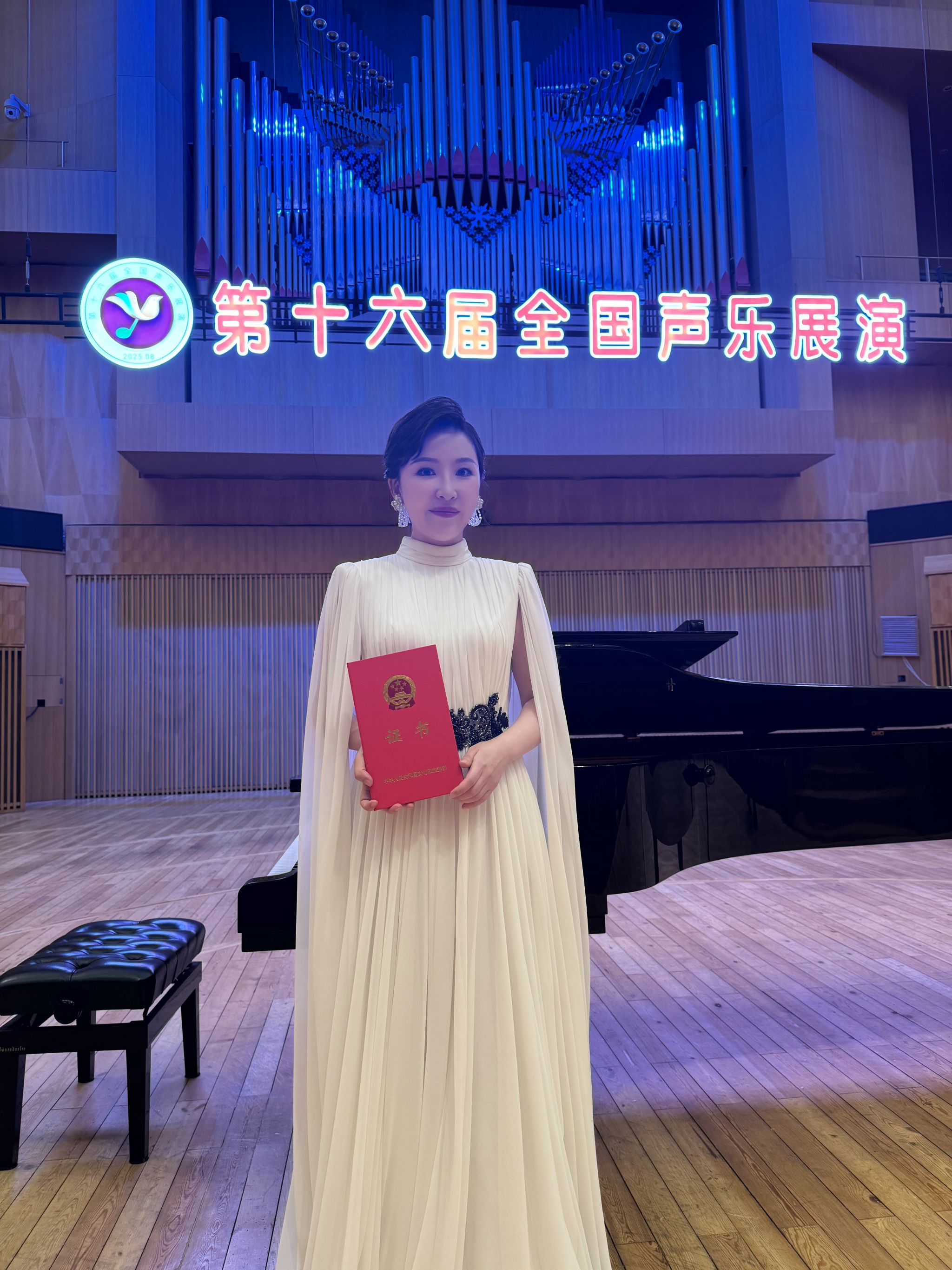 近日,由国家文化和旅游部、哈尔滨市人民政府主办的2025年第十六届全国声乐展演暨第二届全国优秀交响乐作品展演在哈尔滨举行。公司硕士生导师贾茹老师、郝亮亮教授分别进入美声组、民族组专场第二、三阶段的音乐会。郝亮亮教授成功入选第三轮总展演,并获得中国声乐“优秀人才”称号。